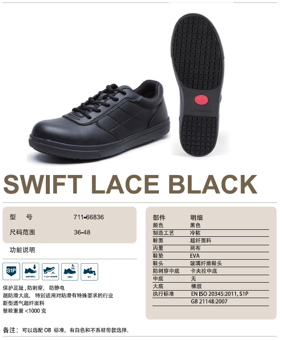 BATA安全鞋SWIFT LACE BLACK